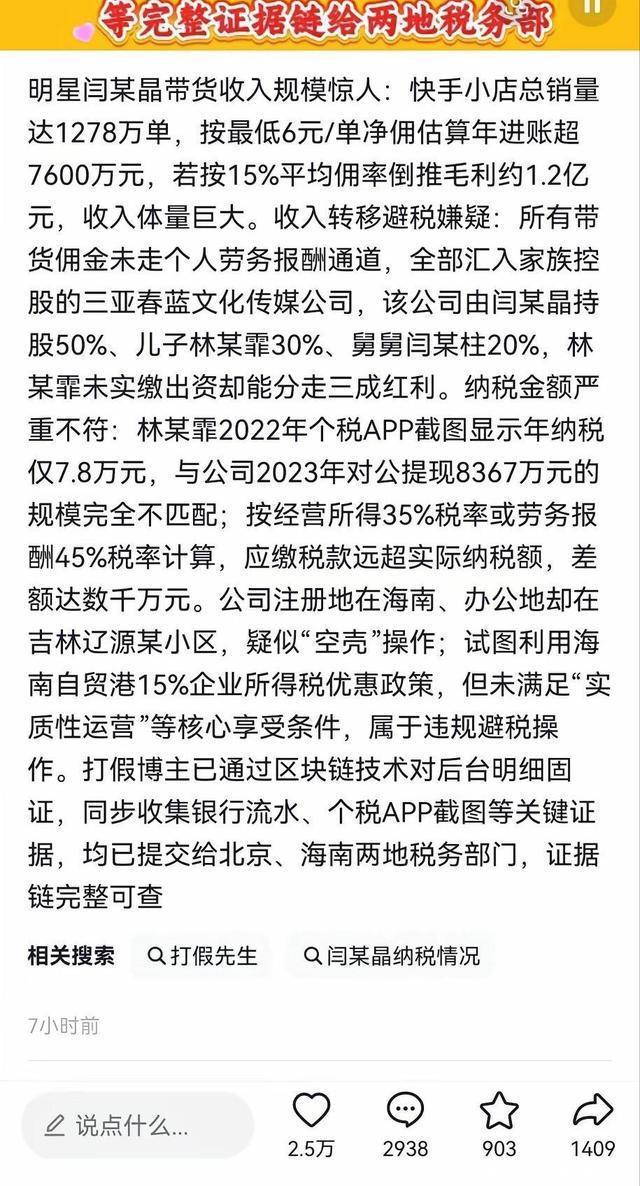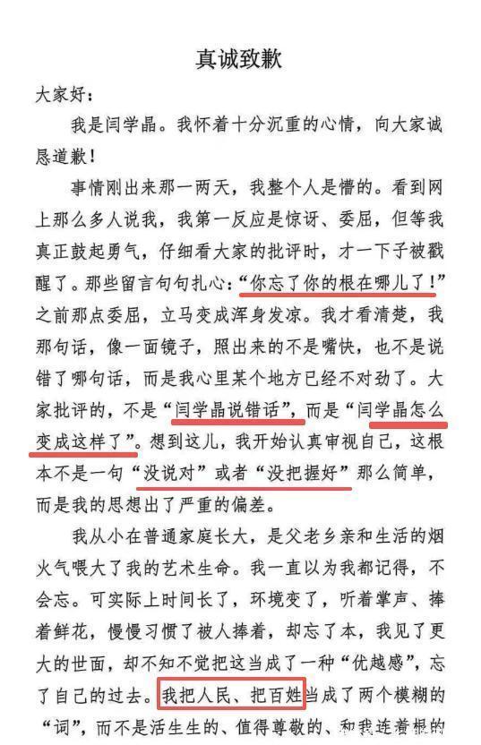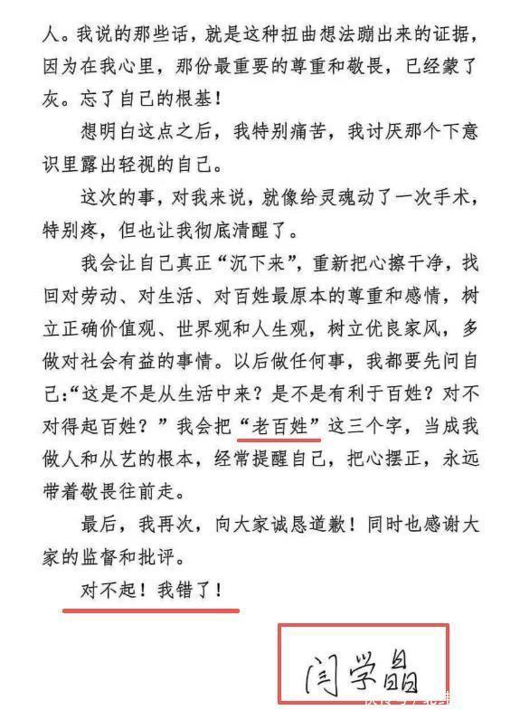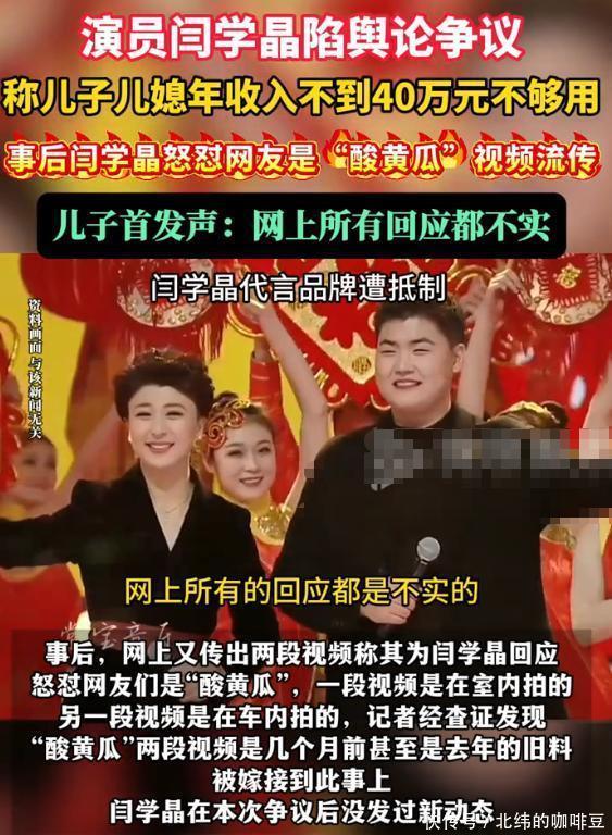 她是从农村走出去的大明星,靠着苦情人设成为了“国民媳妇”,最后却忘了自己的根。 一边在豪宅里数着钞票,一边又在直播里“卖惨、哭穷”,将积攒半辈子的口碑毁于一旦。 被人民网彻查后,她放下身段主动道歉,却没想到适得其反,走到这一步怪不了别人。 终于装不下去了?“忘本”的闫学晶再次传来噩耗,这回是真的洗不白了。 最近闫学晶可谓是出尽了风头,可能她也没想到因为自己的一句“百八十万不够花”让自己成为了众矢之的。 当初她说这话有多随意,现在就有多后悔,可网友们并没有给她狡辩的机会,而是将她的过往扒了个底朝天。 结果深扒之后才发现,闫女士的背后真是一片“废墟”,她曾经做过的事儿单拎出来那一条都够塌房的。 首先就是嫌弃自己的出身,早年间她在接受采访时,回忆自己在学艺期间因自己的农村出身感到委屈。 小编觉得她能有今天这下场真是怪不了别人,往上细数三代谁不是农村出身。 真不知道这样的人是怎么当上“一级演员”的,又是怎么配的上“艺术家”这三个字的。 观众对于演员来说,那可是衣食父母的存在,然而在闫女士的眼里,这些人都变成了“酸黄瓜”。 要不说她越扒越有呢,因为“哭穷”事件的发酵,有网友翻到她之前嘲讽网友是“酸黄瓜”。 还有网友扒出她用一种极其傲慢的语气说“能咋地”,当时很多网友都以为她是在回应争议。 结果闫女士儿子站出来表示是误会,这两段画面都是很久之前的了,并表示他们并没有对此事做出回应。 要不说互联网是有记忆的呢,要想人不知除非己莫为,之前的种种行为早就预示着她会有今天。 口碑崩塌的闫女士很快就迎来了“噩耗”,不仅儿子受牵连,就连自己代言的品牌也深受其害。 都说不是一家人不进一家门,闫女士和她代言的品牌可真是把这句话展现的淋漓尽致。 娱乐圈有很多塌房的明星,很多品牌要么选择高调官宣解约,要么就是默默的取消合作。 而闫女士代言的大酱品牌倒好,不仅站在闫女士这一边,还口不择言阴阳消费者。 之后网友们也不惯着他们,纷纷抵制该品牌,最终他们也服了软配资中国,表示正在评估代言合同。 除了品牌合作没了之外,有网友扒出闫女士曾自曝儿子是通过“新疆班”考进的中戏。 很快这件事引发了更大的舆论,要知道这种行为已经严重影响到了社会的公平。 闫女士可是大张旗鼓的在直播间称“一家人都是北京户口”,怎么能有机会上“新疆班”呢。 很快有博主发布了自己实名举报的视频,之后中戏也站出来澄清了此事。 不过网友们并不买账,毕竟这娘俩在大家心里已经没有诚信可言了。 这件事情发酵的不是一般大,就连人民网都站出来点评了此事,她也彻底的偃旗息鼓了。 之后看着事情发展属实严重,闫女士终于不再沉默,站出来和网友们道了歉。 然而整篇的道歉文里,没有让网友们感到真诚,反倒通篇废话,甚至有种高高在上的感觉。 在文中她多次提到“老百姓”这三个字,虽然知道是说的我们,但总有种和她不在一个阶级的感觉。 本以为道完歉这件事就能告一段落,结果她没想到更大的麻烦还在后面呢。 有网友指出了她收入问题,这些年闫女士直播带货那可真是赚的不少,但税务问题却成了大问题。 于是网友专门收集了有力的证据上交有关部门核实,要是真如网友所说她税务上有问题,那她这下可就真是翻身无望了。 有网友调侃经过这件事,她儿子也别想一年赚百八十万不够花了,这下百八十万也赚不来了。 也不知道是不是要处理税务问题,近日网友在三亚的机场偶遇到了她。 能看出来这次的风波给她带来的影响不小,之前身上的傲气已经全然不在。 当天她穿着一条浅蓝色的牛仔裤,上年搭配着一件白色T恤,外面搭配了一件黑色衬衫外套。 整体打扮很朴素,站在人群中的她双手插兜,脸上的表情看着有些黯淡无光。 估计是在为自己惹下的烂摊子发愁,无论是代言被撤还是被禁言,这对她日后的生活都有不小的影响。 要说最难解决的还是儿子学籍和公司税务问题,这两个可不单单是能用嘴一言两语能说清楚的。 希望她能拿出有利的证据证明自己的清白,如果真如网友举报的那样,她这大半辈子努力得来的好生活将不复存在。 如今回看本山大叔当初对她说的那句“希望你永远别变味儿”,即是对她的期望也是忠告。